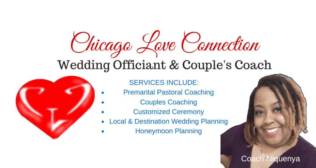 My name is Coach Niquenya, Certified Christian Life Coach and ordained minister. My team and I at Chicago Love Connection offer customized, non-denominational wedding services to help make your special day memorable.